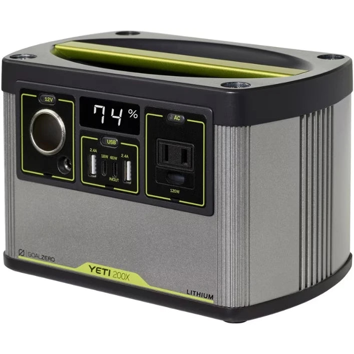 The Goal Zero Yeti 200X Portable Power Station is designed to provide reliable power for various outdoor activities, including camping. It features multiple output ports to charge and power small devices such as smartphones, cameras, and laptops. Its compact size and relatively light weight make it suitable for transport in backpacks or vehicles.