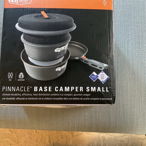 The GSI Outdoors Pinnacle Camper Cookset is designed to offer a comprehensive cooking solution for small groups during camping trips. It combines multiple cooking components into a compact, organized package, making it easy to carry and store. The cookset typically includes pots, pans, mugs, and other essential cooking utensils, all nesting neatly together to save space.