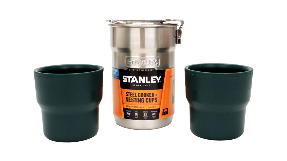 The Stanley Adventure Camp Cook Set is designed for outdoor cooking enthusiasts who want a compact and durable set for their camping trips. It includes essential cookware pieces such as a pot, pan, and cup, all made from robust materials suited for outdoor use. The design emphasizes practicality and ease of transport, with nesting components for efficient packing.